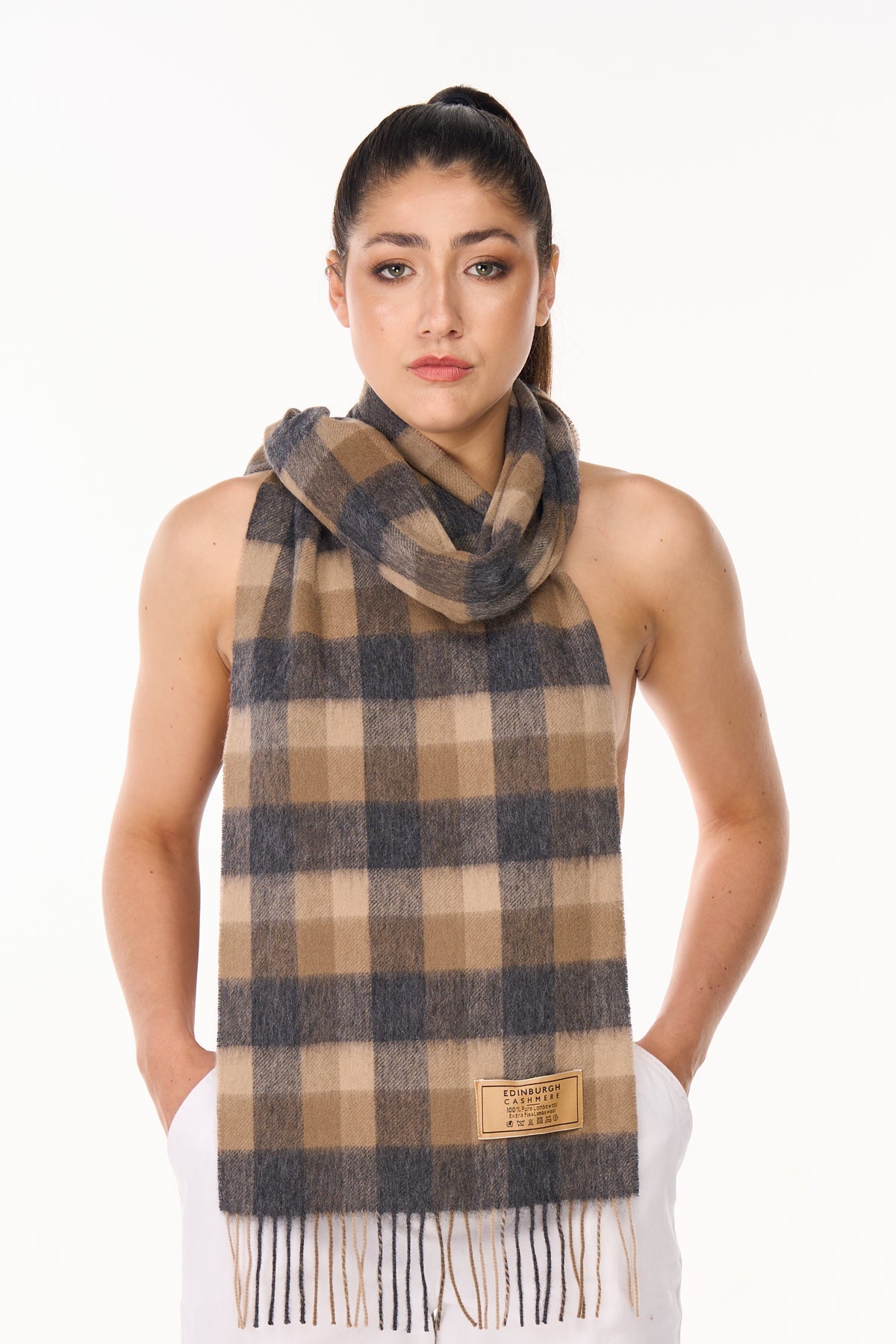 Scottish check scarves are iconic and recognized worldwide. Some of the most famous scarves include Brown Check, which not only showcase Scottish heritage but also serve as fashionable and symbolic accessories. Many Scottish clans have their own tartans, and the choice of tartan often reflects a person's Scottish ancestry or personal preferences. You can find scarves in these tartans in various materials, 100% pure Extra fine cashmere, making them popular choices for both warmth and style worldwide.