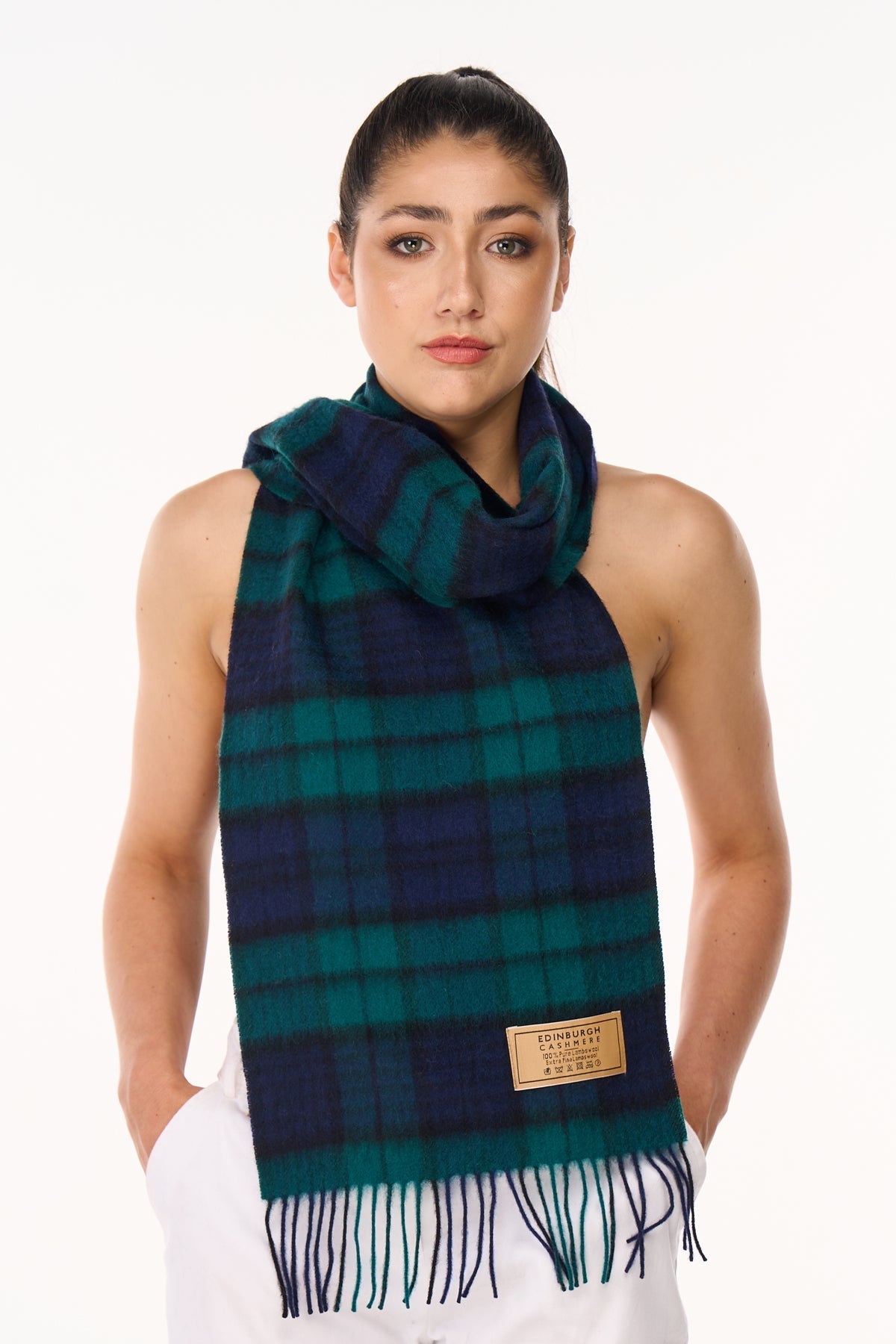 Scottish tartan scarves are iconic and recognized worldwide. Some of the most famous tartans scarves include Black Watch, which not only showcase Scottish heritage but also serve as fashionable and symbolic accessories. Many Scottish clans have their own tartans, and the choice of tartan often reflects a person's Scottish ancestry or personal preferences. You can find scarves in these tartans in various materials, 100% pure Extra fine cashmere, making them popular choices for both warmth and style worldwide.