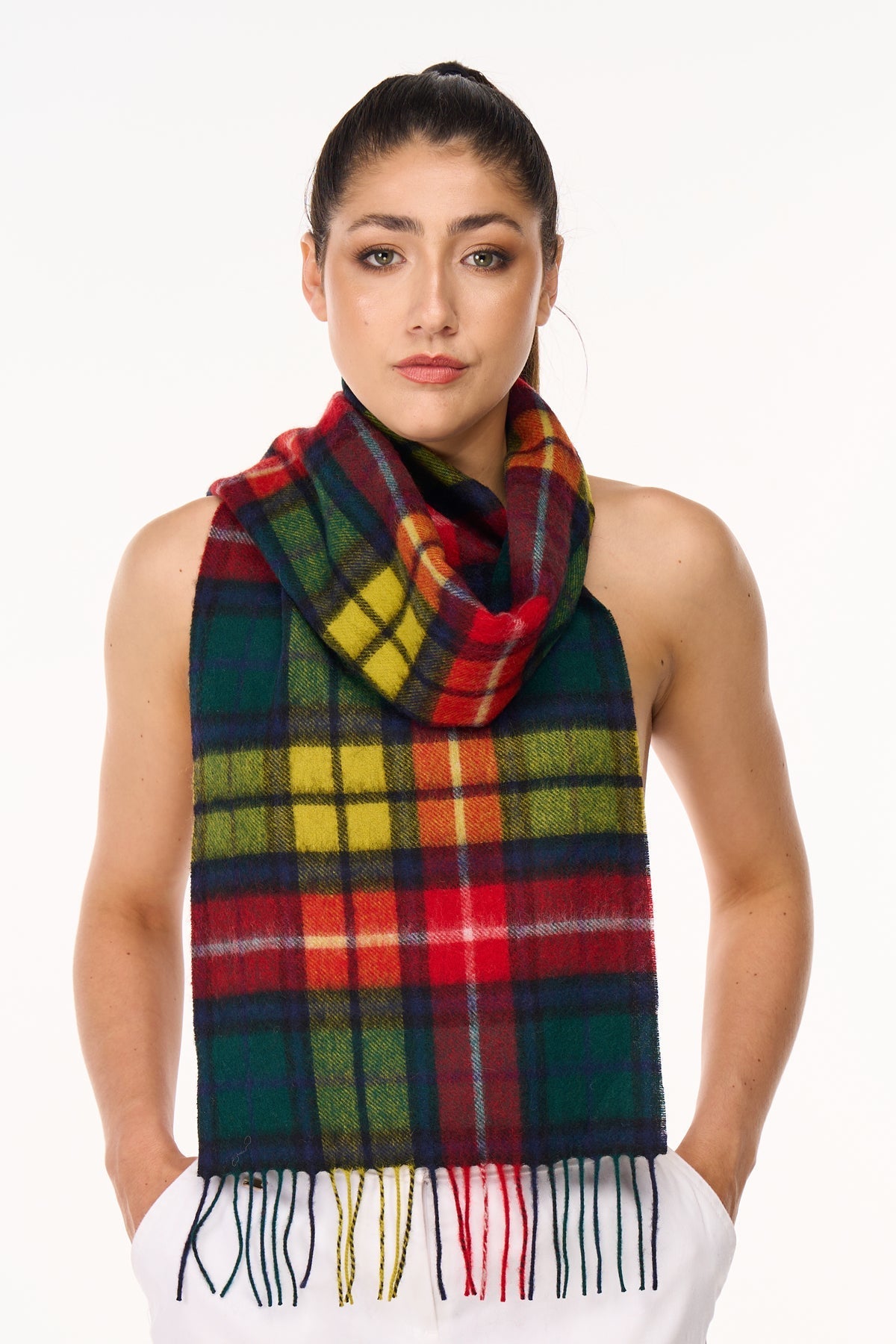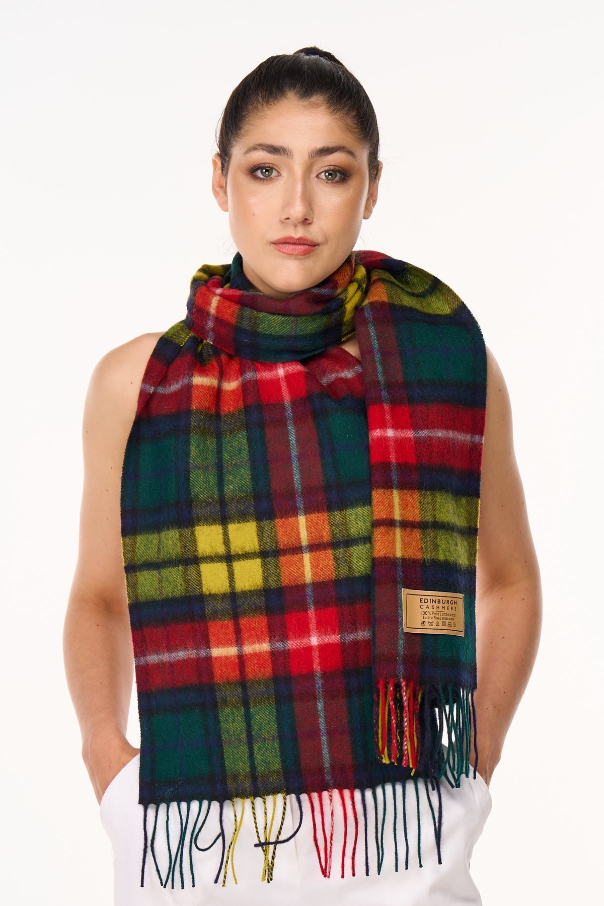 Scottish tartan scarves are iconic and recognized worldwide. Some of the most famous tartans scarves include Buchanan scarves not only showcase Scottish heritage but also serve as fashionable and symbolic accessories. Many Scottish clans have their own tartans, and the choice of tartan often reflects a person's Scottish ancestry or personal preferences. You can find scarves in these tartans in various materials, 100% pure Extra fine cashmere, making them popular choices for both warmth and style worldwide.