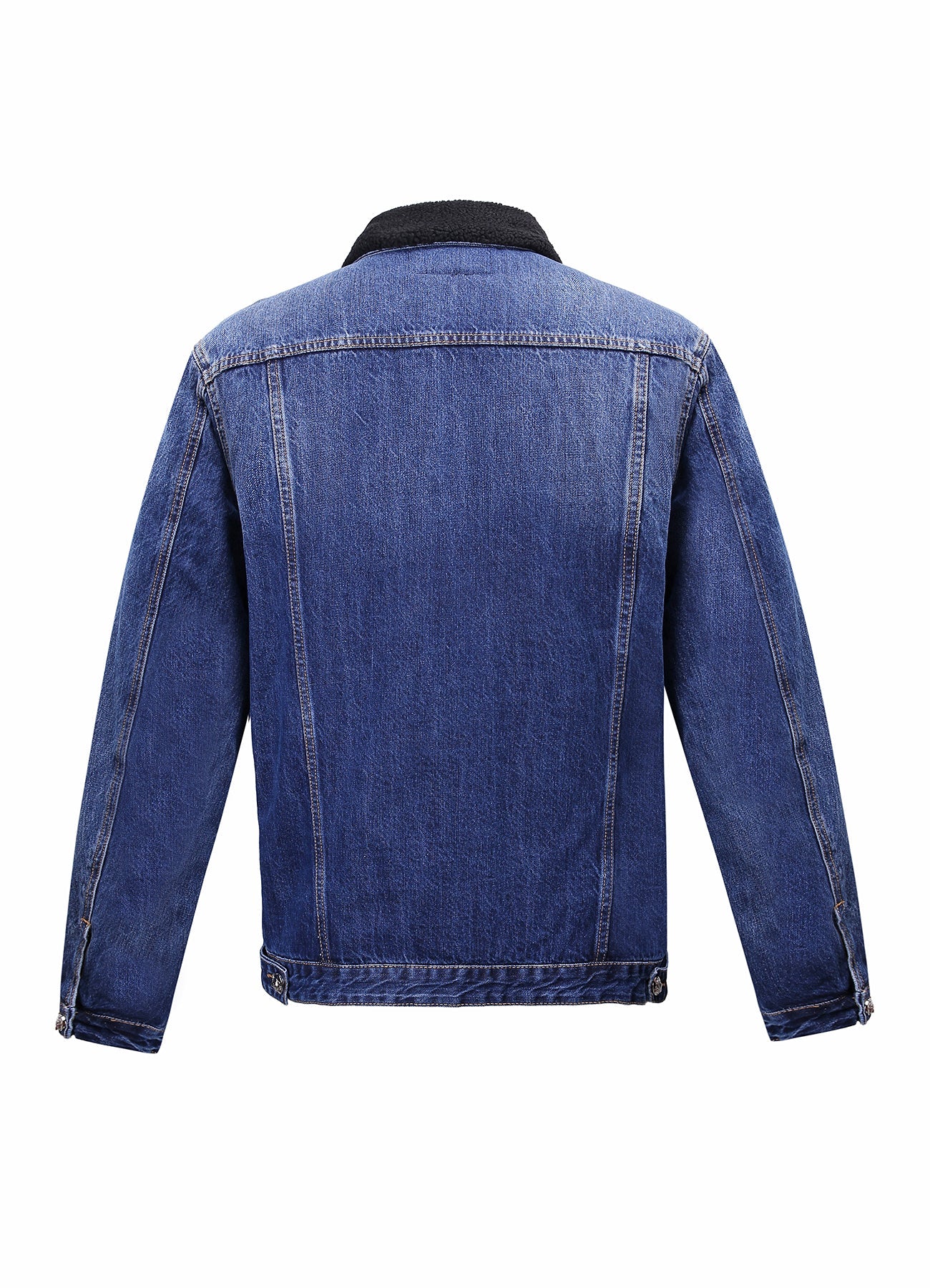 Embroidered Dark Blue Denim Jacket With Faux Fur