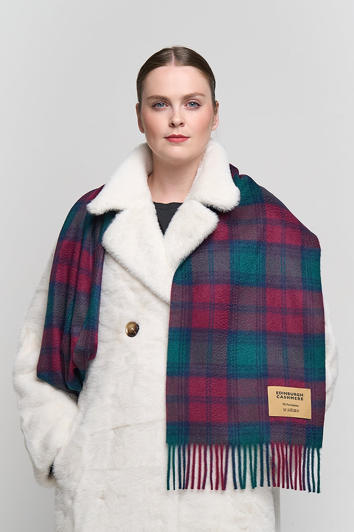 Our Scottish traditional brand, Lucchi Italy, is the first company to make Scottish clan cashmere scarves, it took two years of hard work to make 130 different clans in cashmere. We are also the first producers in the world to manufacture reversible clan scarves, plain coloured on one side and tartan on the reverse, giving you two alternative looks from one scarf.