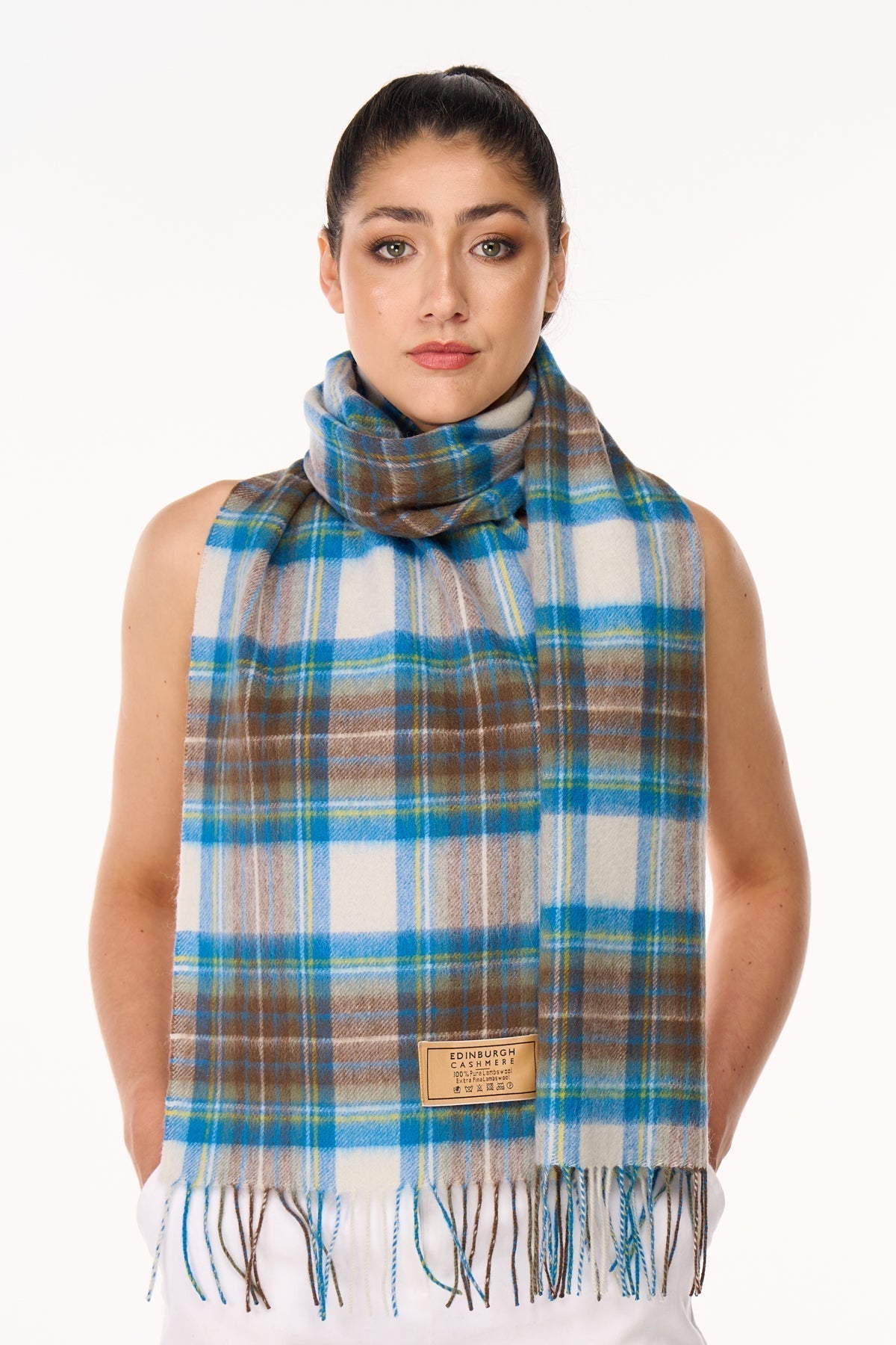 Scottish tartan scarves are iconic and recognized worldwide. Some of the most famous tartans scarves include Stewart Muted Blue not only showcase Scottish heritage but also serve as fashionable and symbolic accessories. Many Scottish clans have their own tartans, and the choice of tartan often reflects a person's Scottish ancestry or personal preferences. You can find scarves in these tartans in various materials, 100% pure Extra fine cashmere, making them popular choices for both warmth and style worldwide.