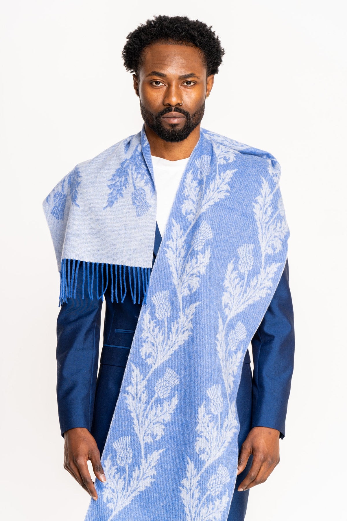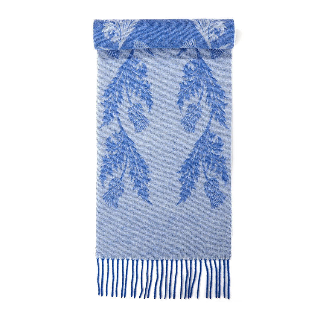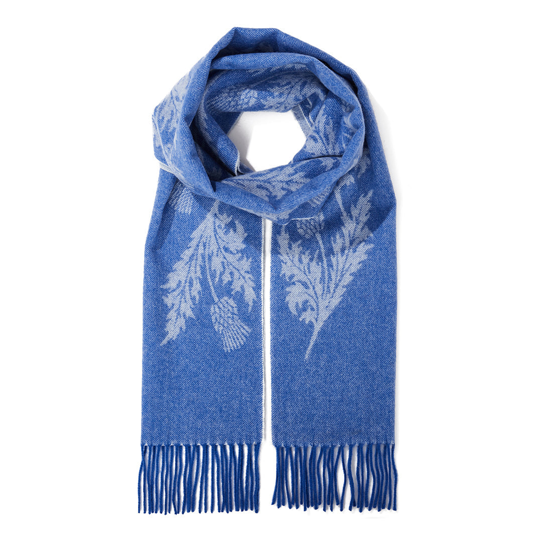 Double Thistle Blue Scarf 100% Pure Lambswool