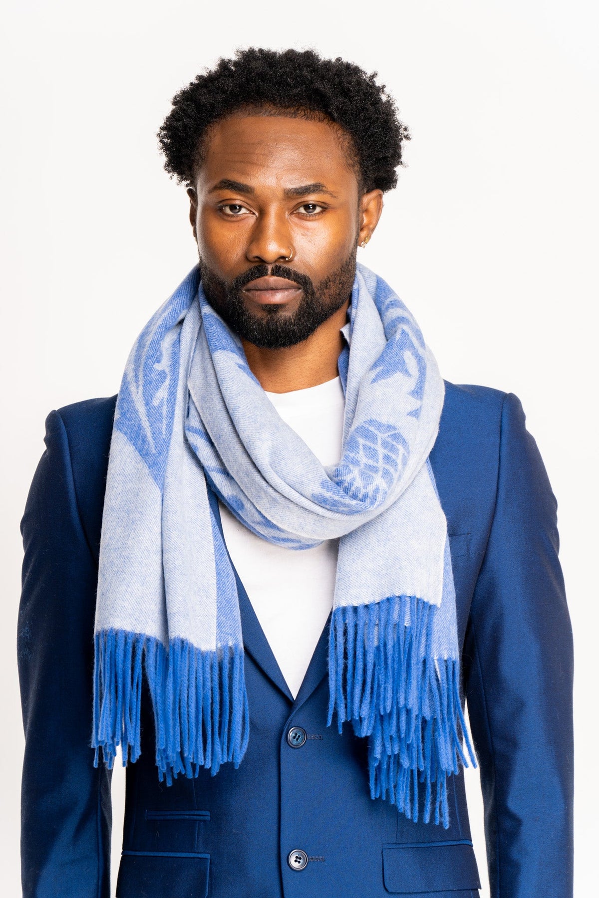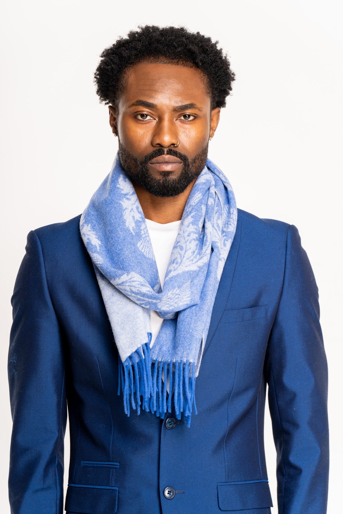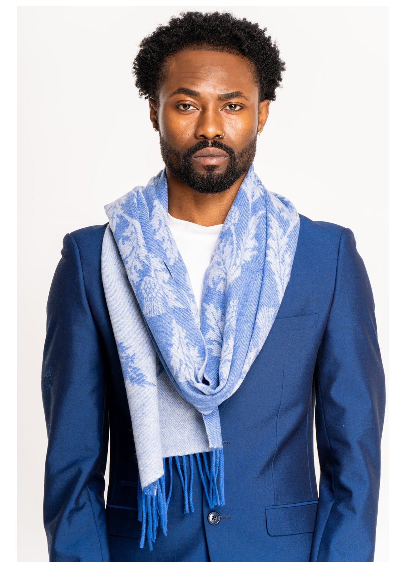 Double Thistle Blue Scarf 100% Pure Lambswool