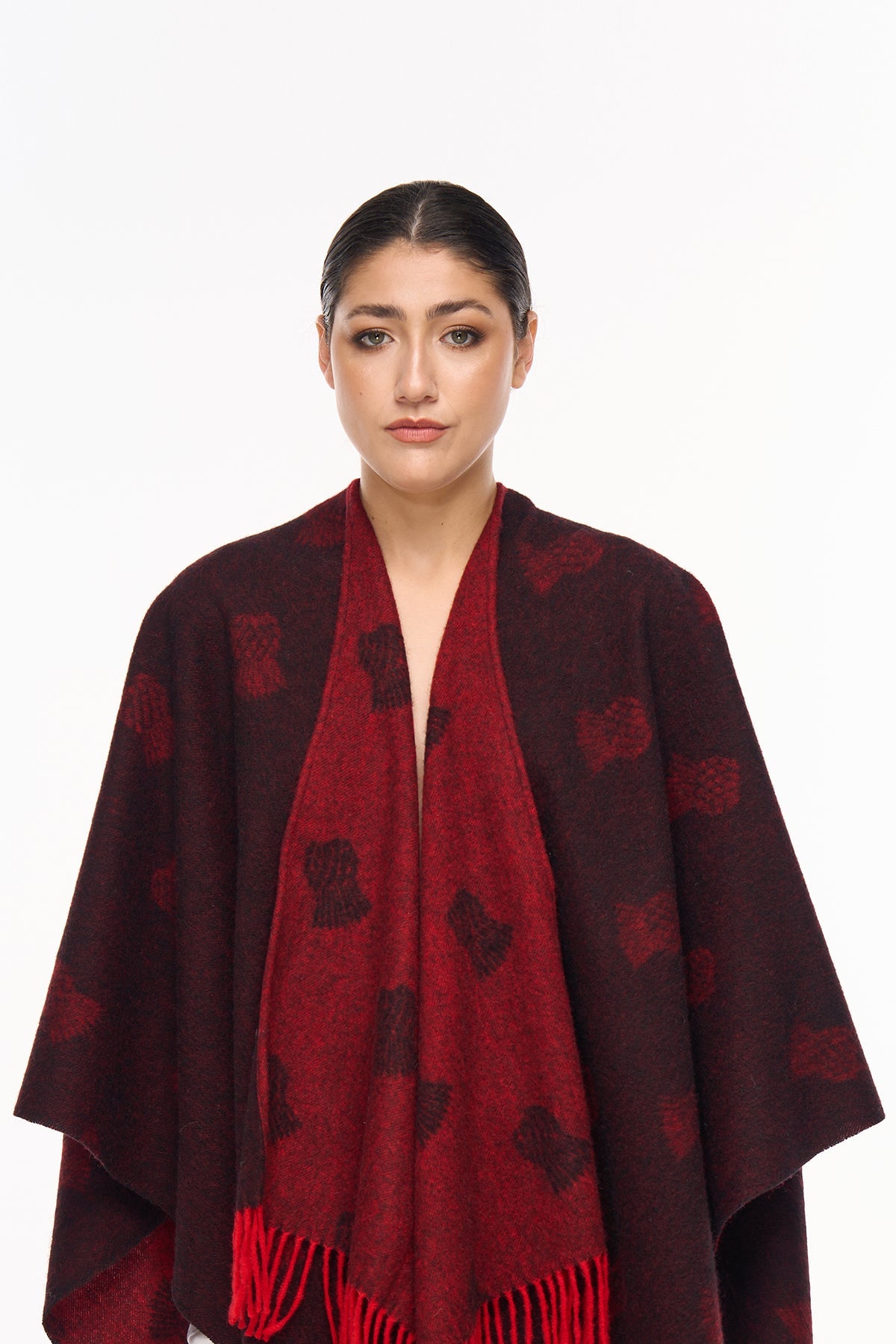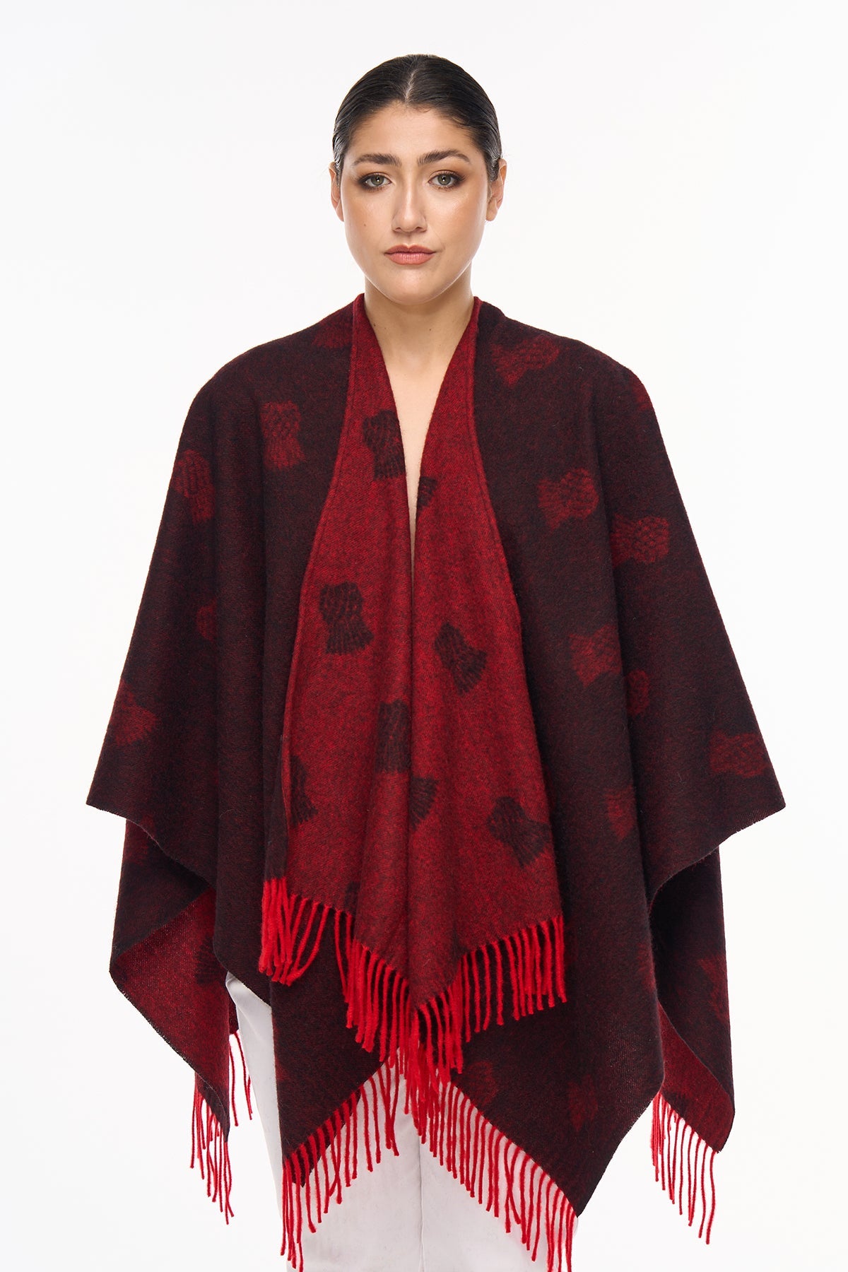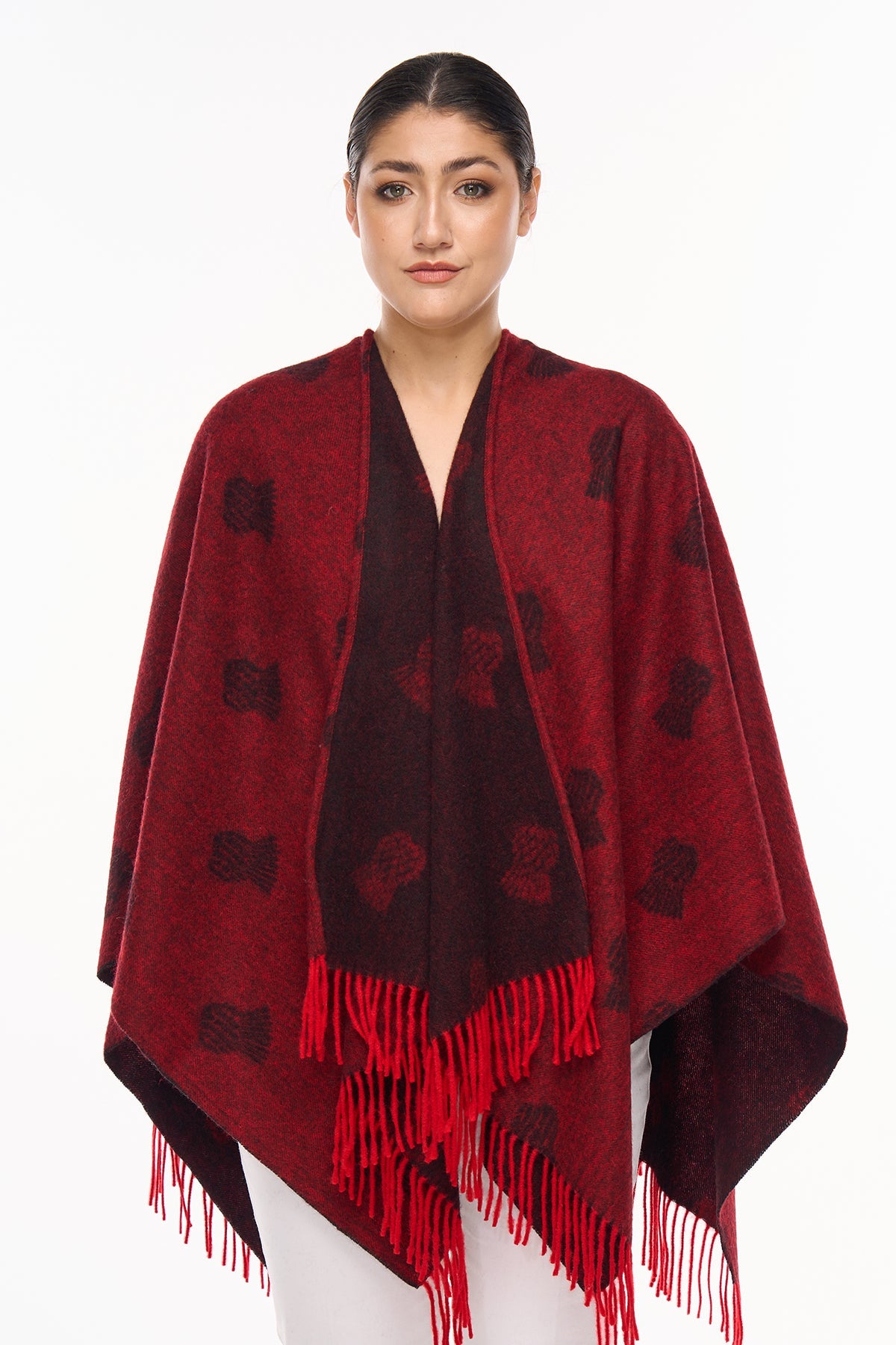 Cape Small Thistle Red Poncho 100% Pure Lambswool
