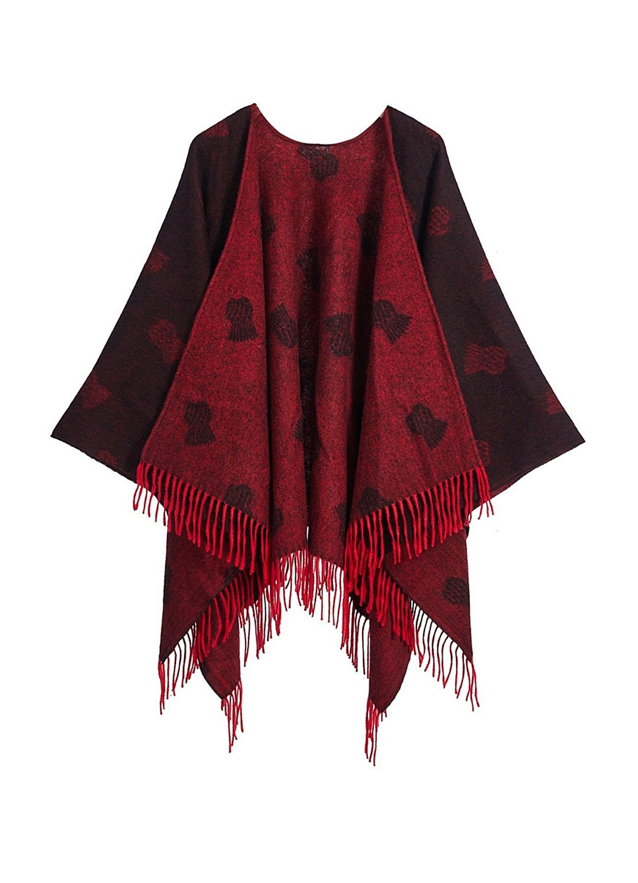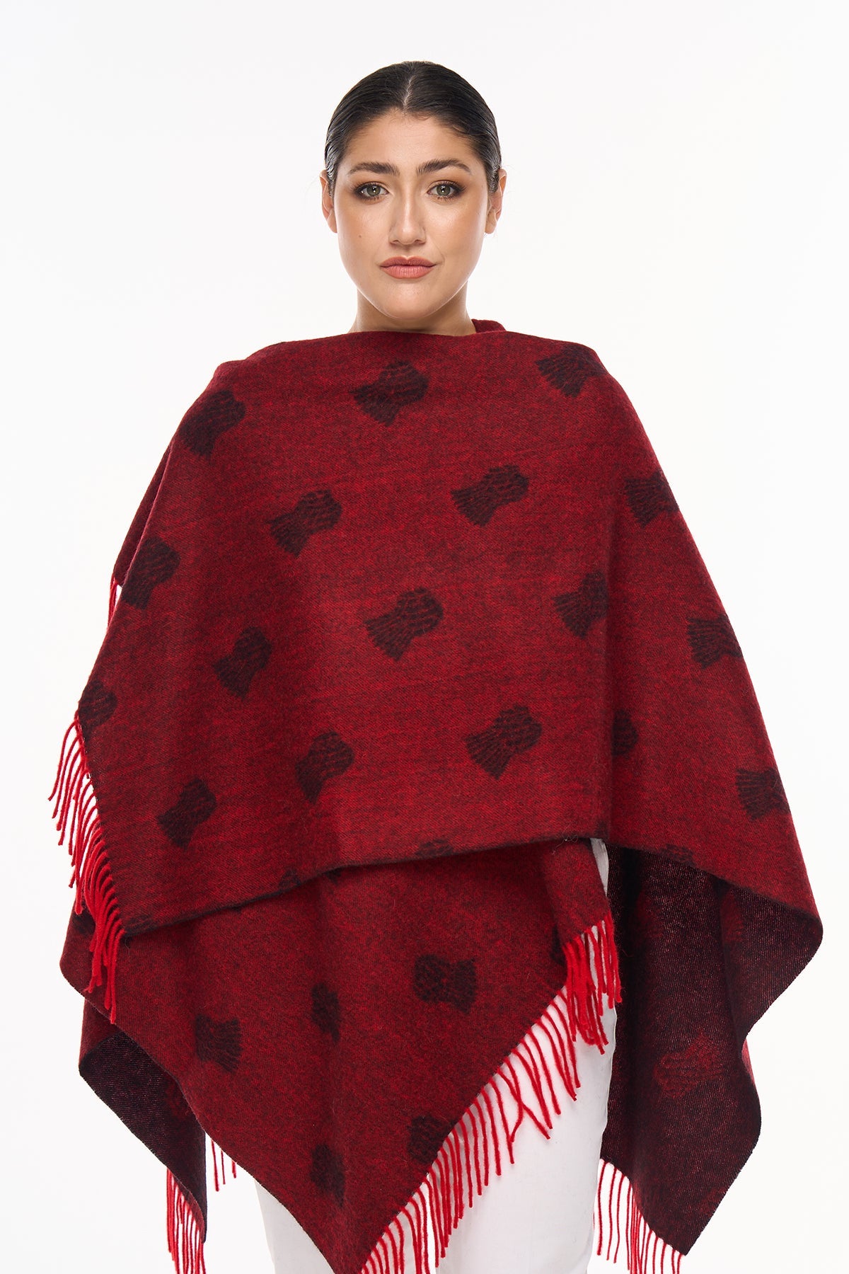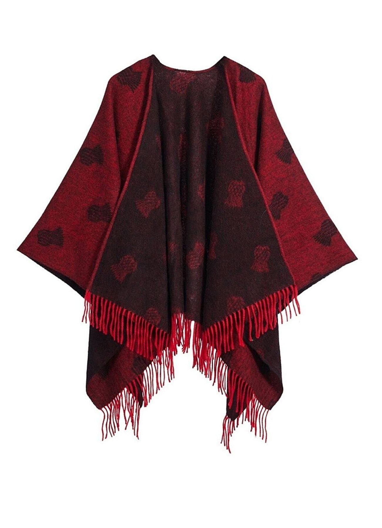 Cape Small Thistle Red Poncho 100% Pure Lambswool