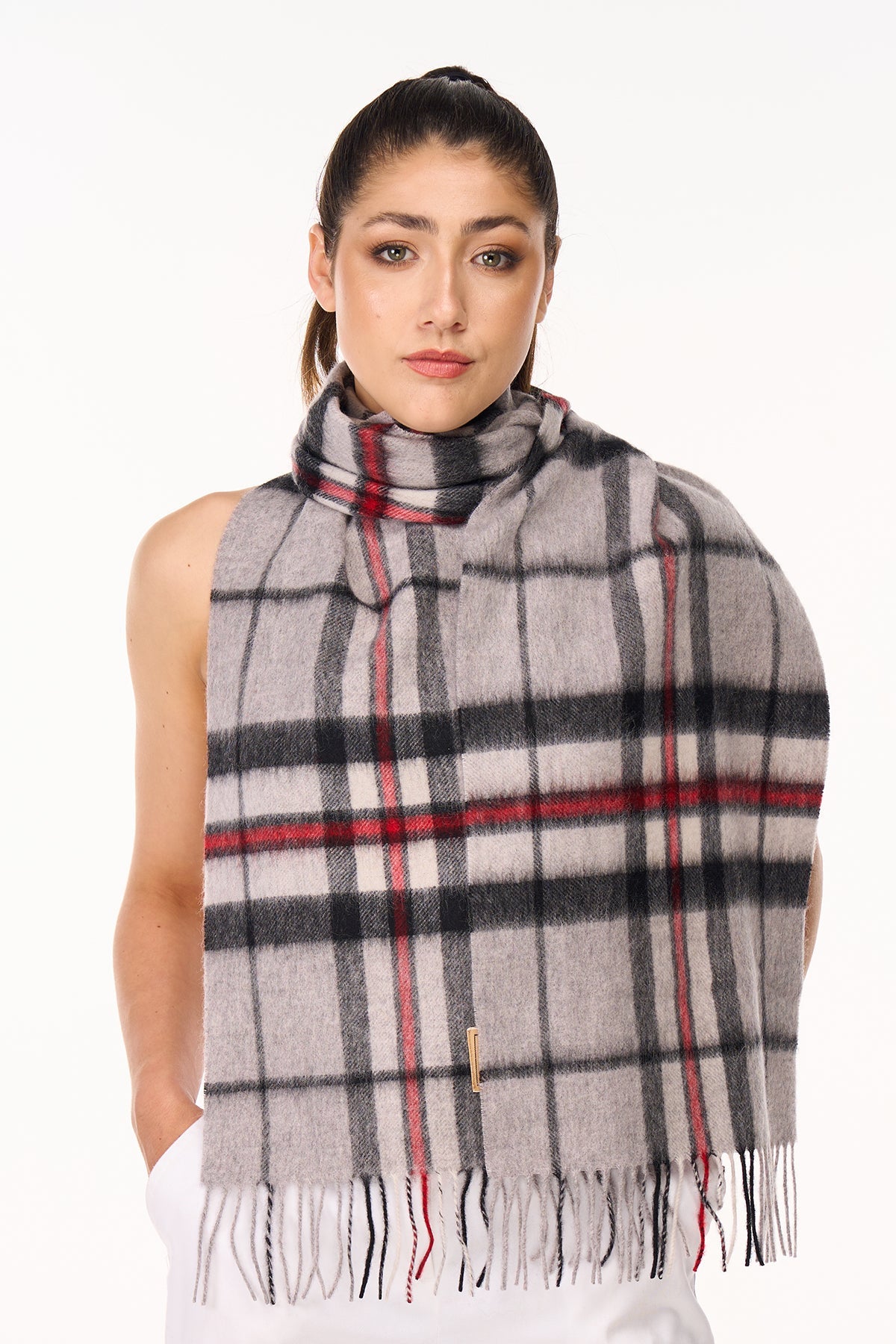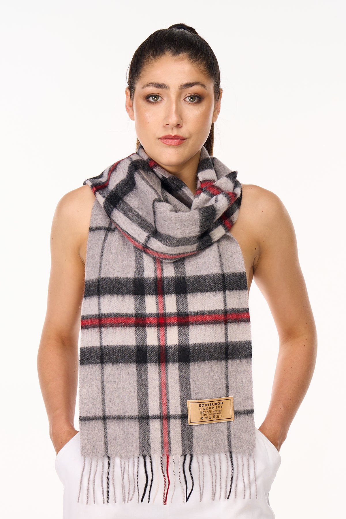 Scarf Tartan 100% Pure Lambswool Scottish Design Thomson Grey