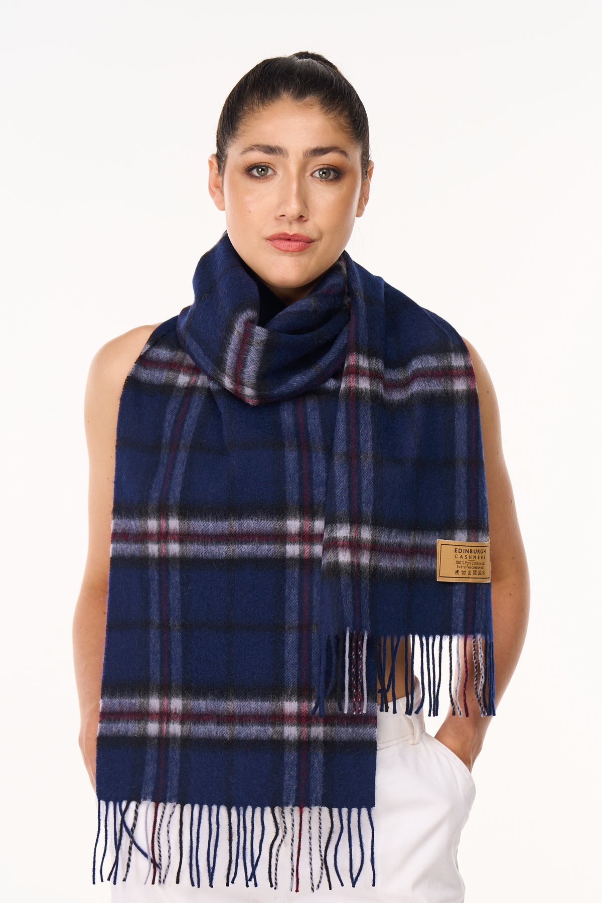 Scottish tartan scarves are iconic and recognized worldwide. Some of the most famous tartans scarves include Thomson Navy not only showcase Scottish heritage but also serve as fashionable and symbolic accessories. Many Scottish clans have their own tartans, and the choice of tartan often reflects a person's Scottish ancestry or personal preferences. You can find scarves in these tartans in various materials, 100% pure Extra fine cashmere, making them popular choices for both warmth and style worldwide.