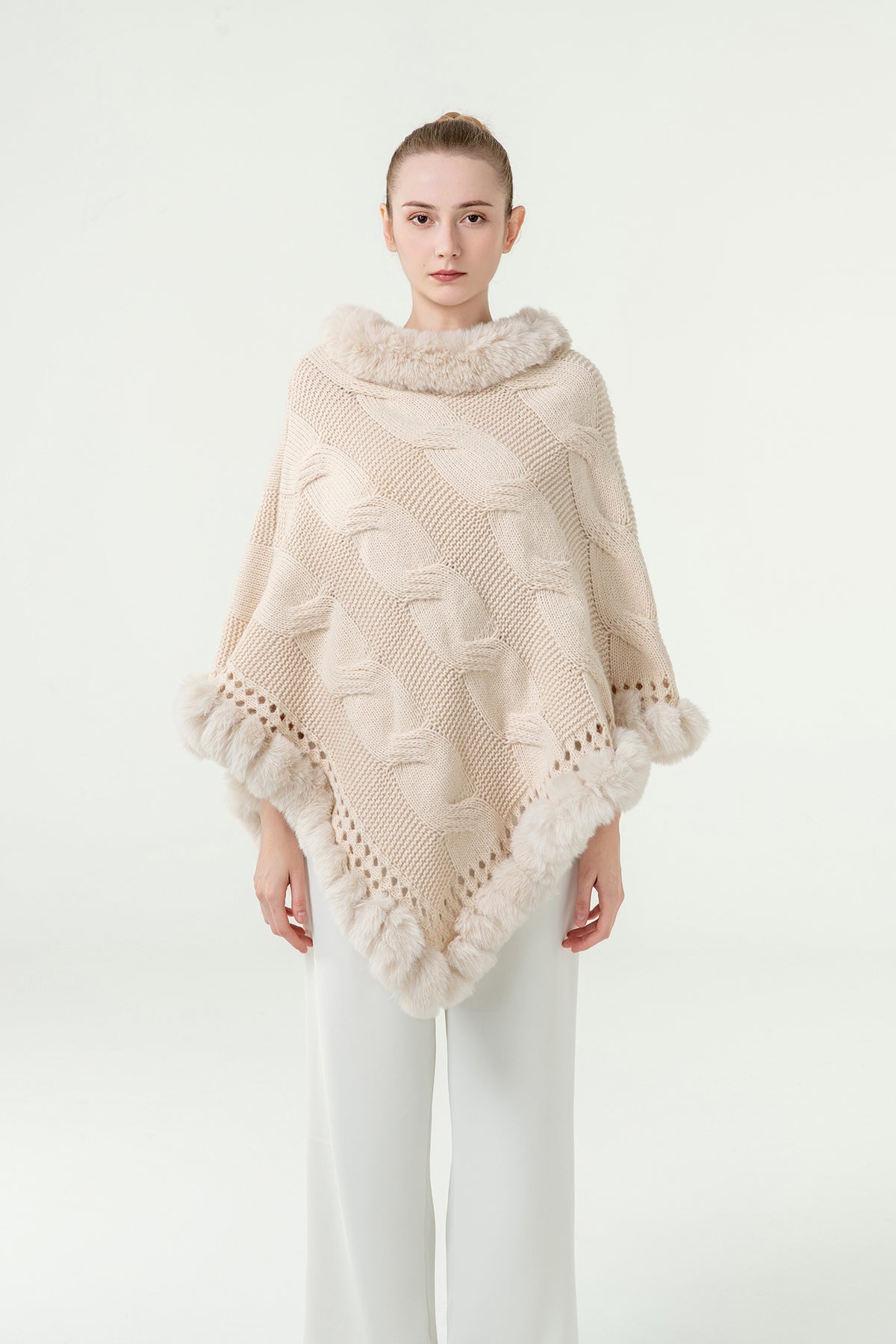 Discover the epitome of luxury with our cashmere and wool women's knitted fur poncho collection. Each piece is designed to provide unparalleled warmth and elegance. Embrace high fashion with our designer knitted ponchos, perfect for adding a touch of sophistication to any outfit.