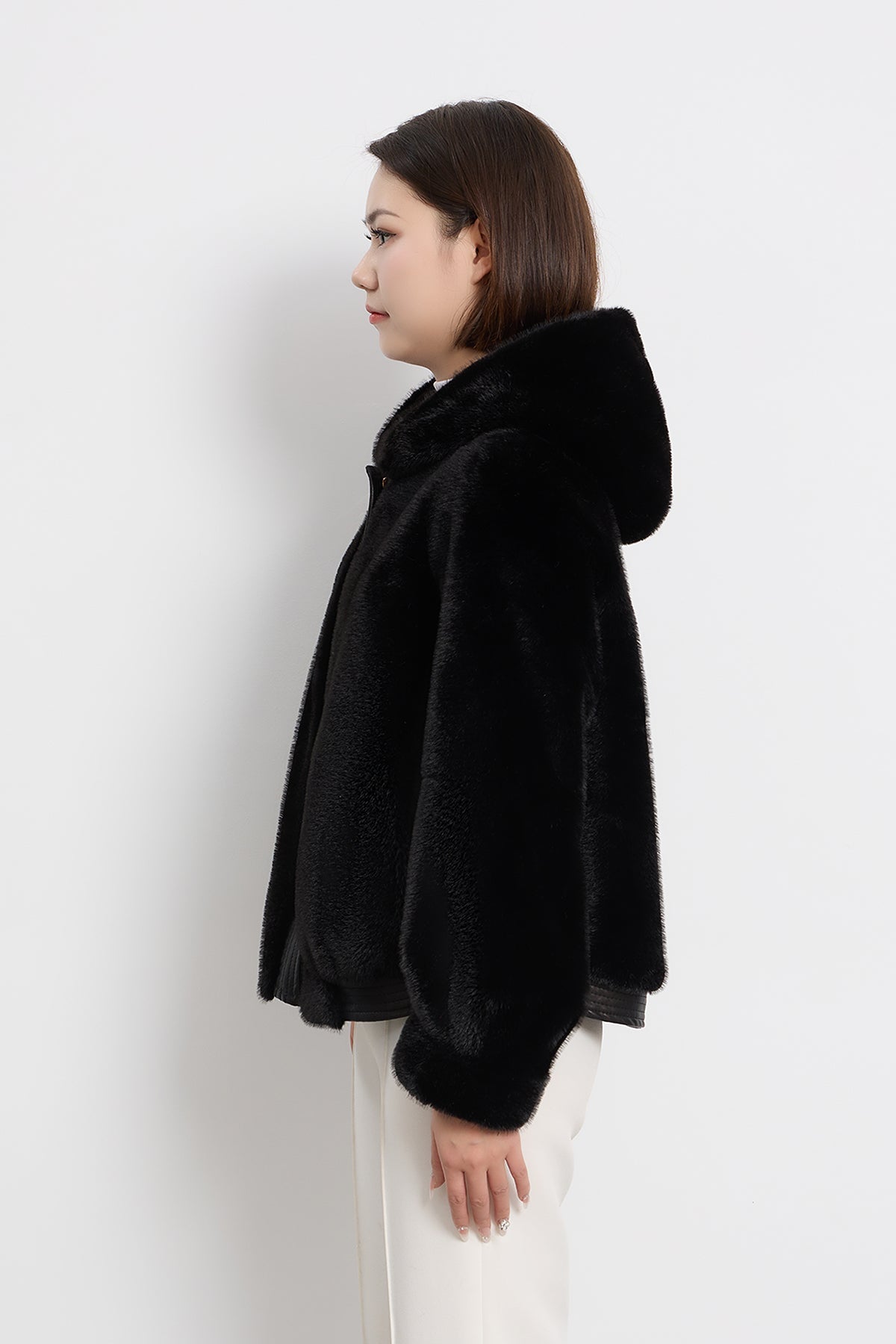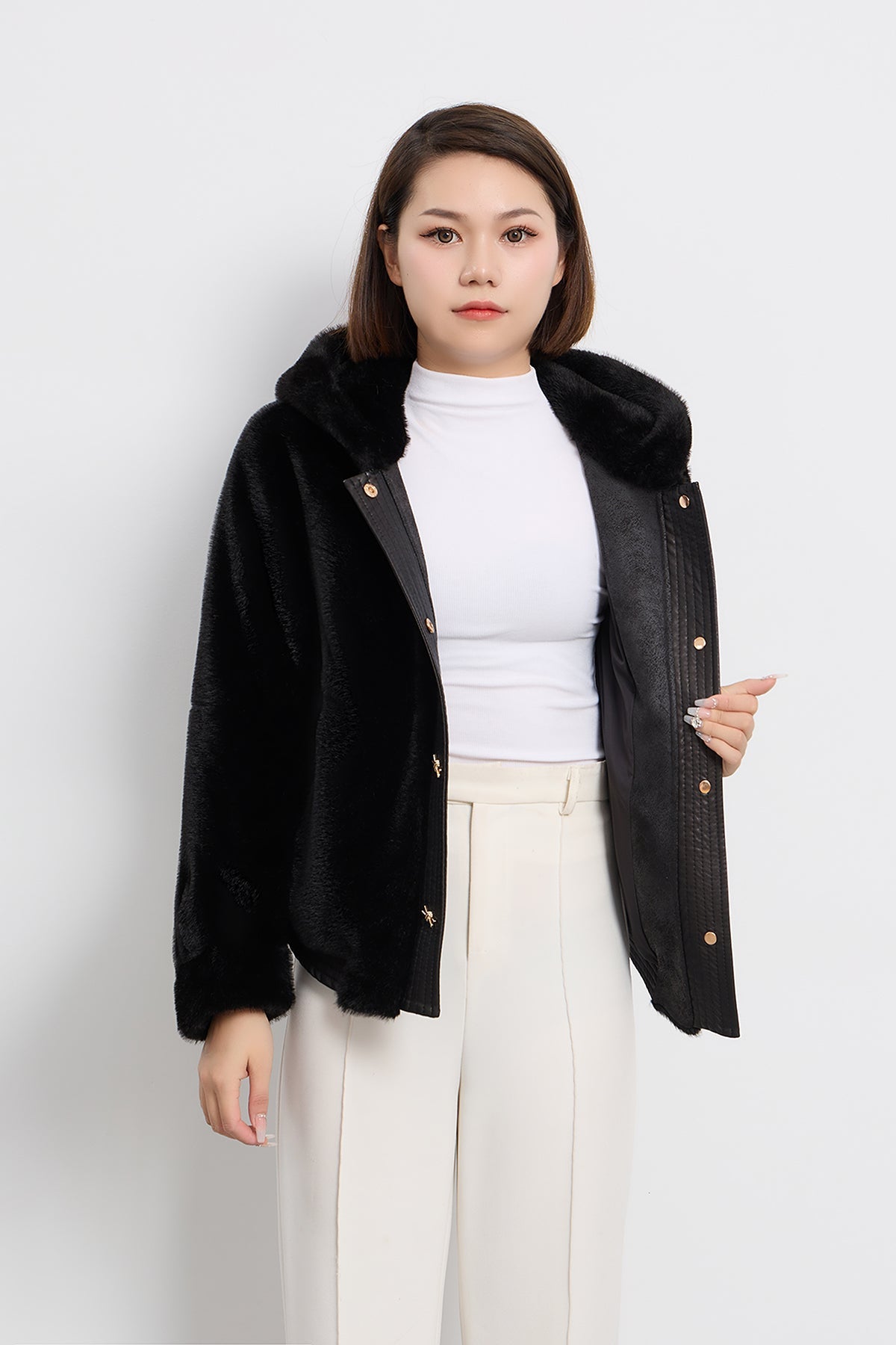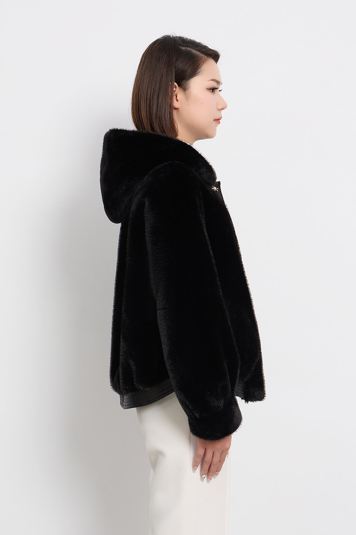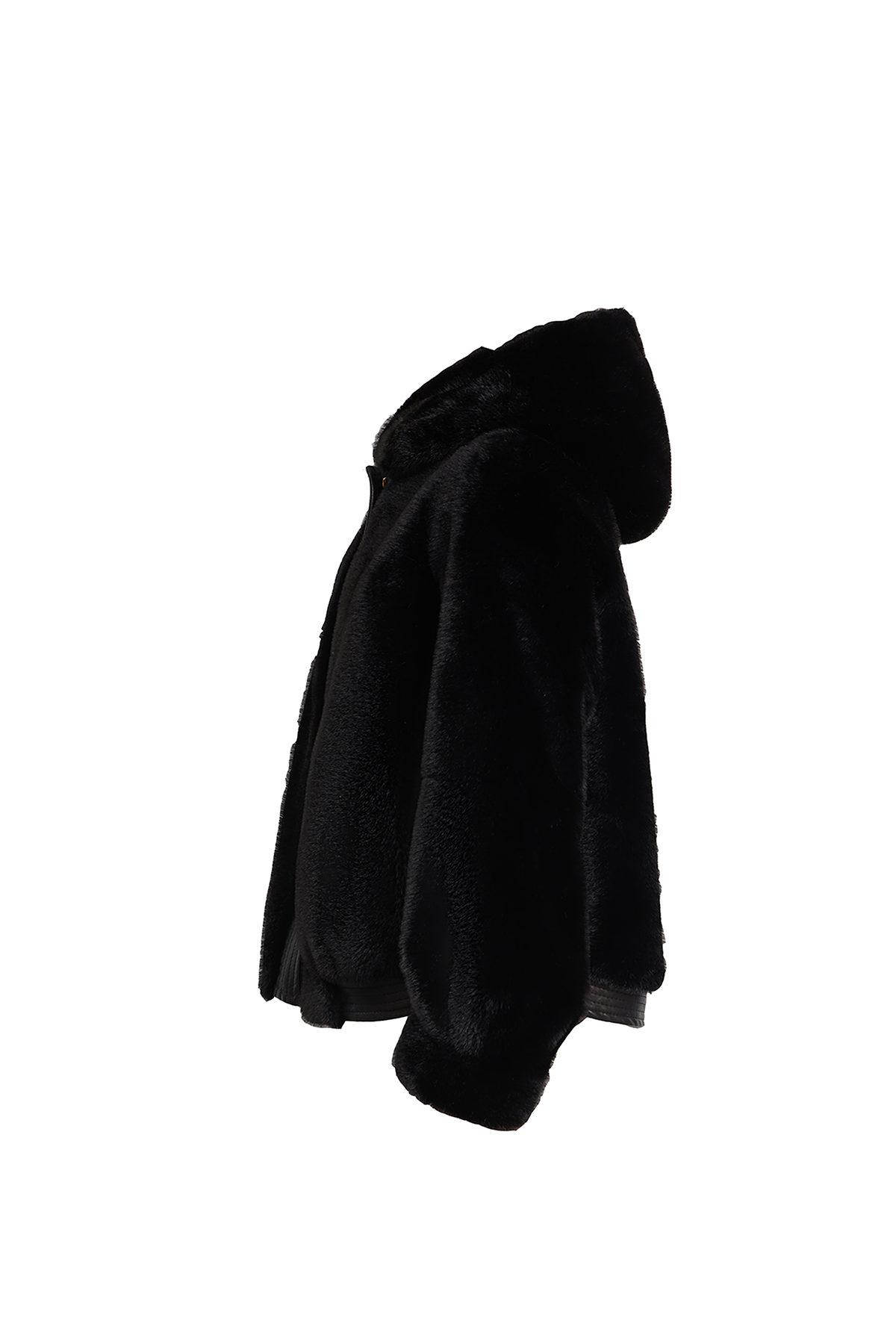Women's Hooded Fur Jacket Exclusive Design - Black