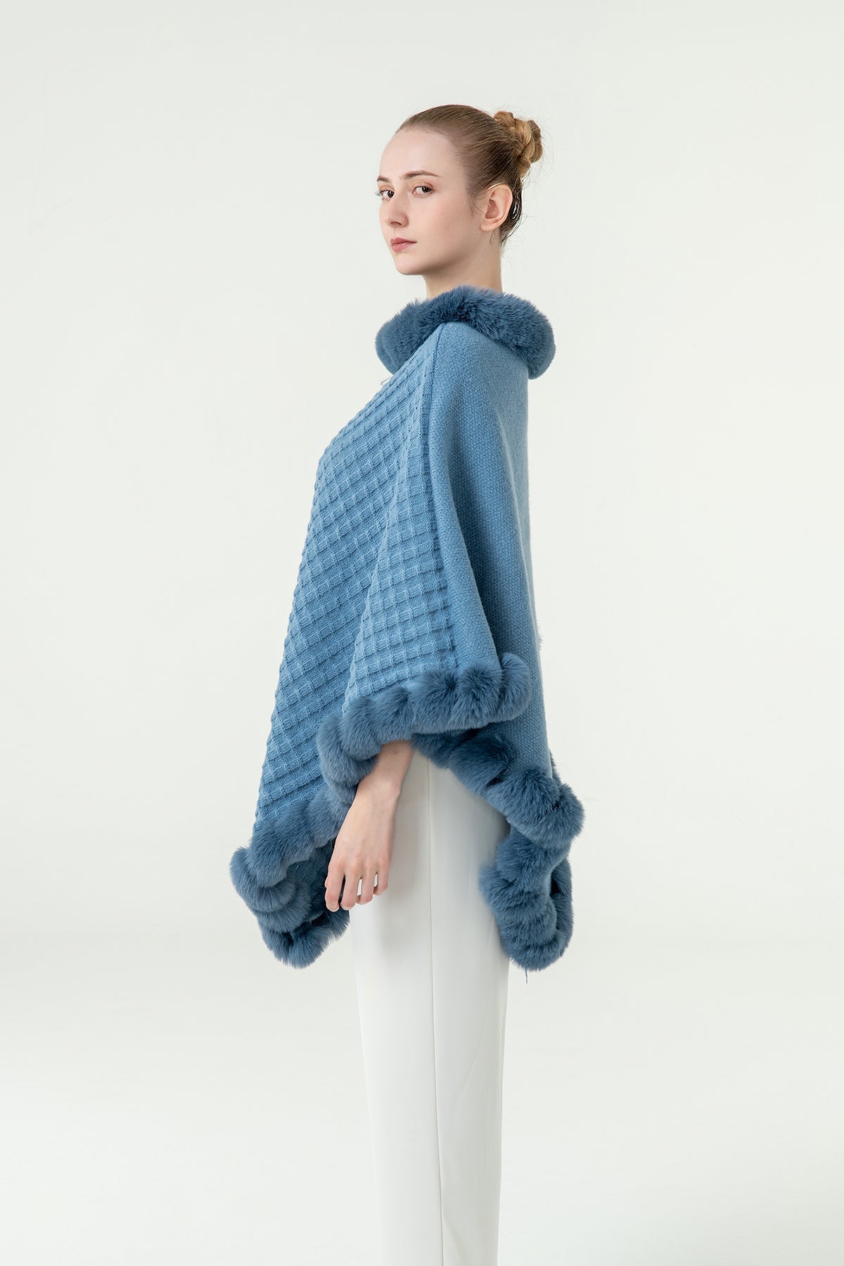 Discover the epitome of luxury with our cashmere and wool women's knitted fur poncho collection. Each piece is designed to provide unparalleled warmth and elegance. Embrace high fashion with our designer knitted ponchos, perfect for adding a touch of sophistication to any outfit.